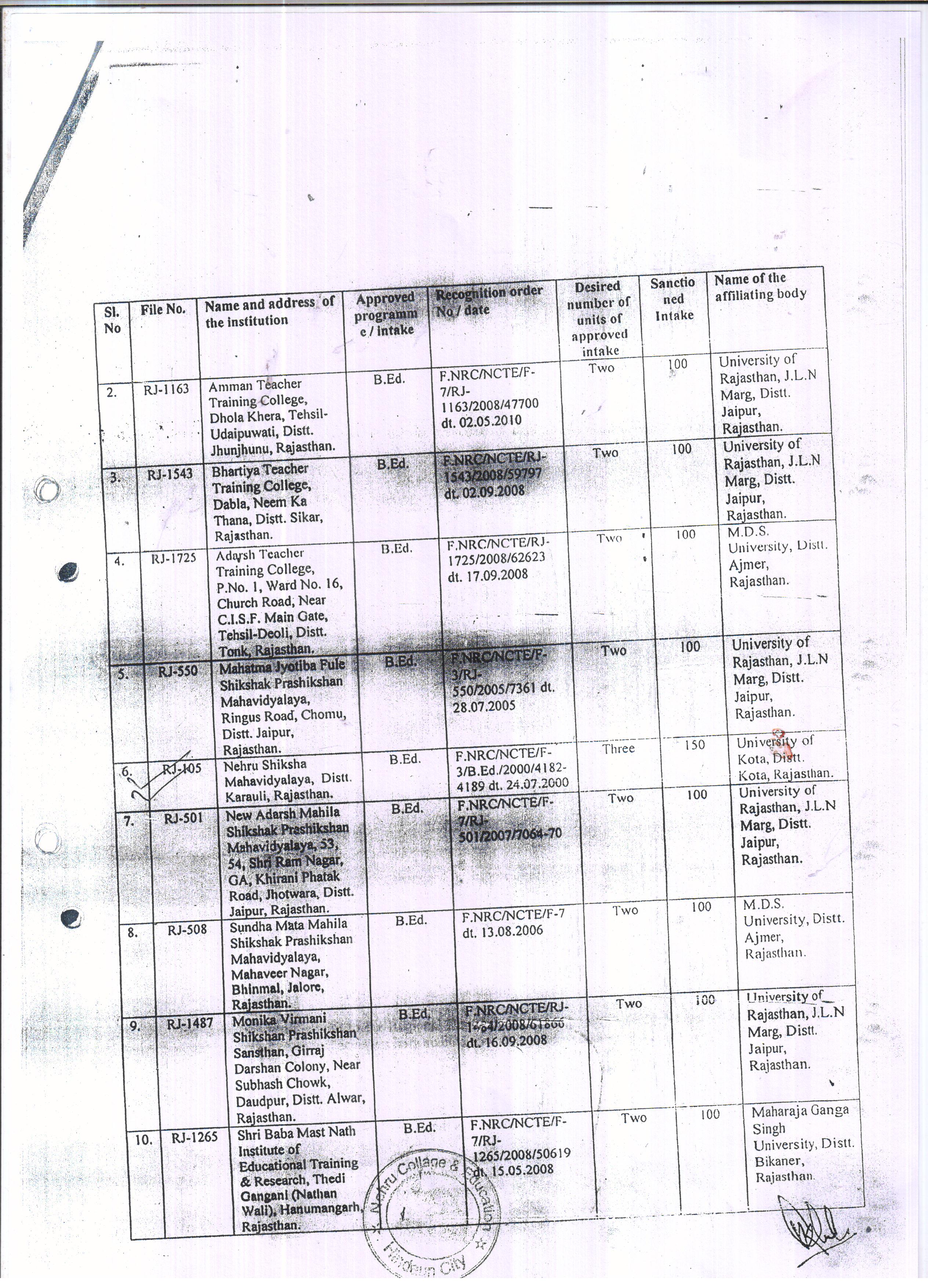 Documents Regarding Affilition From UOK,NCTE,Govt.
